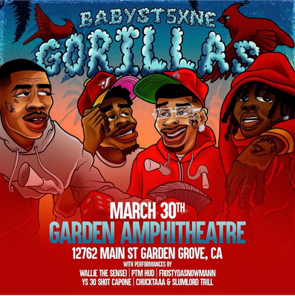 Baby Stone Gorillas will be at Garden Amphitheatre on March 30th with special guests Wallie the Sensei, Slumlord Trill, FrostyDaSnowmann & more! Get your tickets here: https://www.ticketweb.com/event/baby-stone-gorillas-garden-amphitheatre-tickets/12967885
