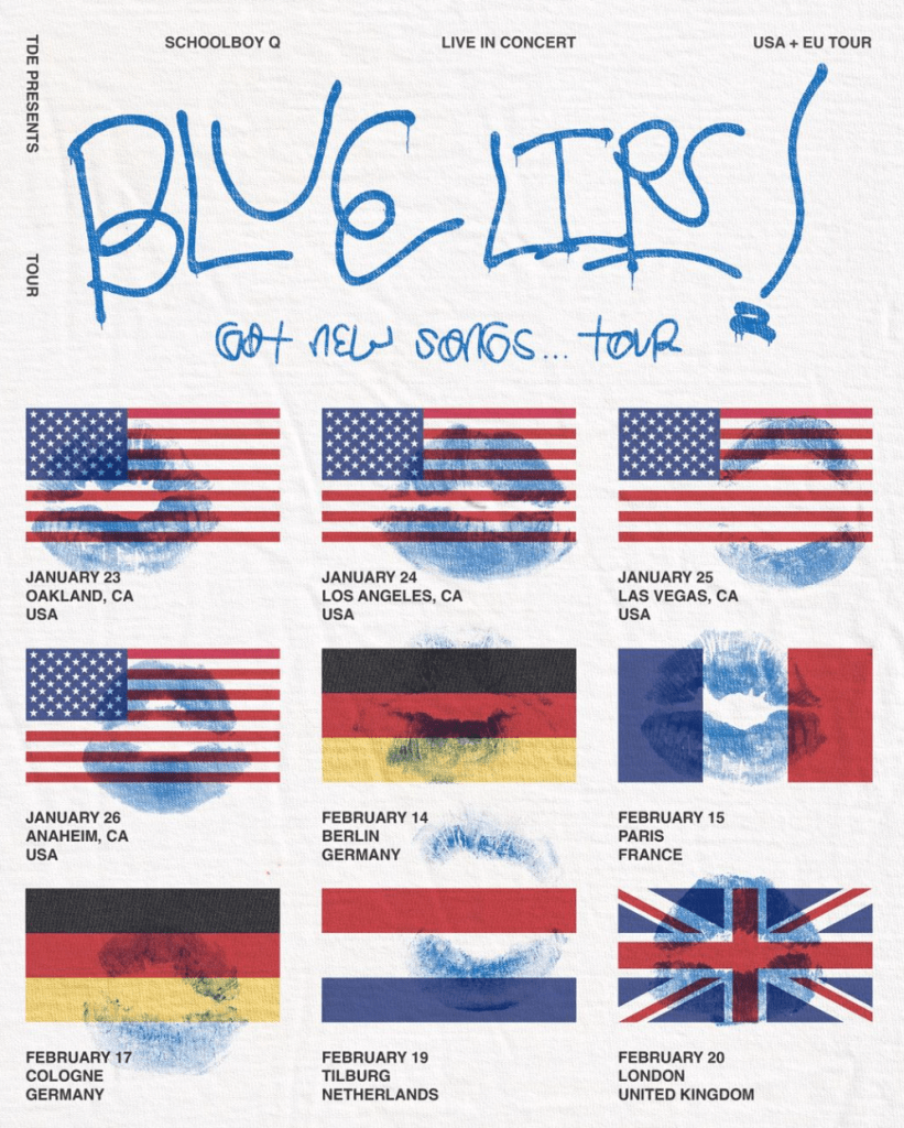 Schoolboy Q is hitting the road again as he continues his “Blue Lips! Got New Songs…” Tour! His Los Angeles show will be held on January 24th at The Novo. Tickets go on sale this Friday, November 22nd at 10am local time. Make sure you get yours here!