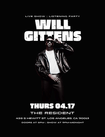 Will Gittens is having his live show/listening party in Downtown Los Angeles at The Resident. Get your tickets here: https://www.residentdtla.com/events/1289114619529-will-gittens/