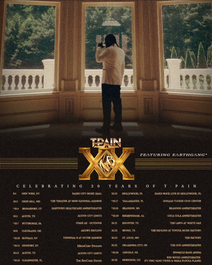 T-Pain is hitting the road to celebrate 20 years of his music that lives with the people, he states in social media post announcement. He will be hitting the road with Dreamville’s Earthgang as support & the one question I have is, WHY IS THERE NO LA DATE?