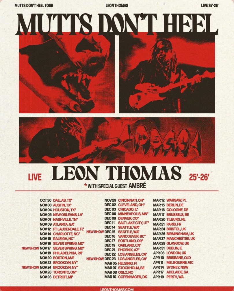 Leon Thomas is hitting the road with AMBRE starting in October for his “Mutts Don’t Heel” Tour that will kick off this October and end next year in the UK. Head to https://www.leonthomas.com/tour/ for more info!
