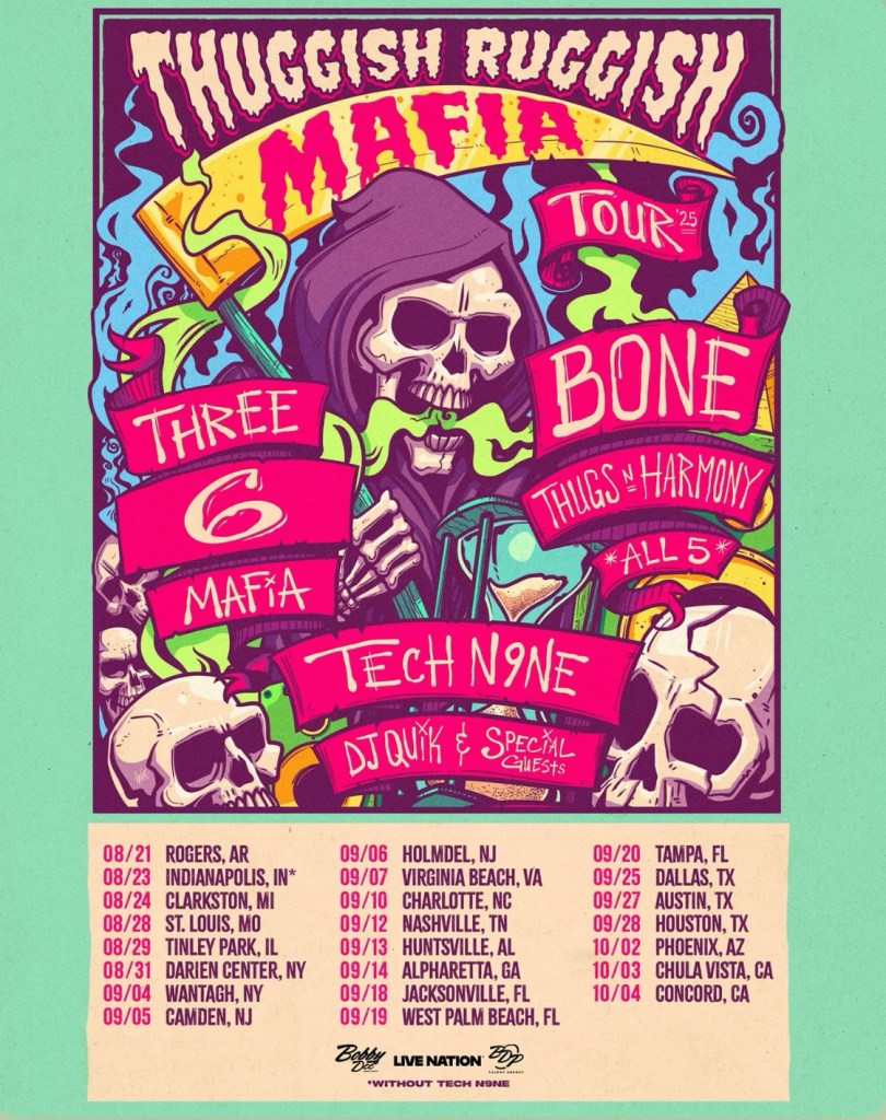Three 6 Mafia, Bone Thugs N Harmony, Tech N9ne, & DJ Quik are hitting the road for their “Thuggish Ruggish Mafia” tour! Presale code is: THUGGISH MAFIA with general going on sale Friday June 13th at 10am local time.
