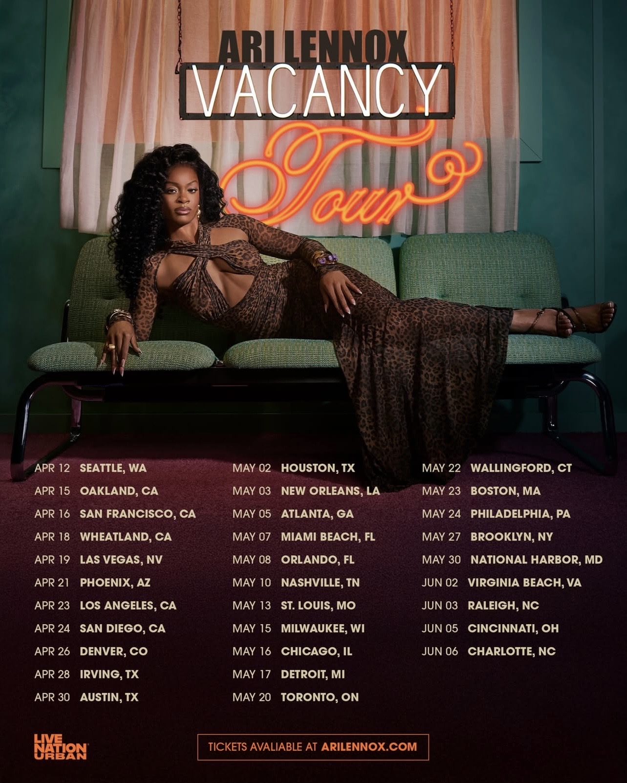 Tickets available at AriLennox.com